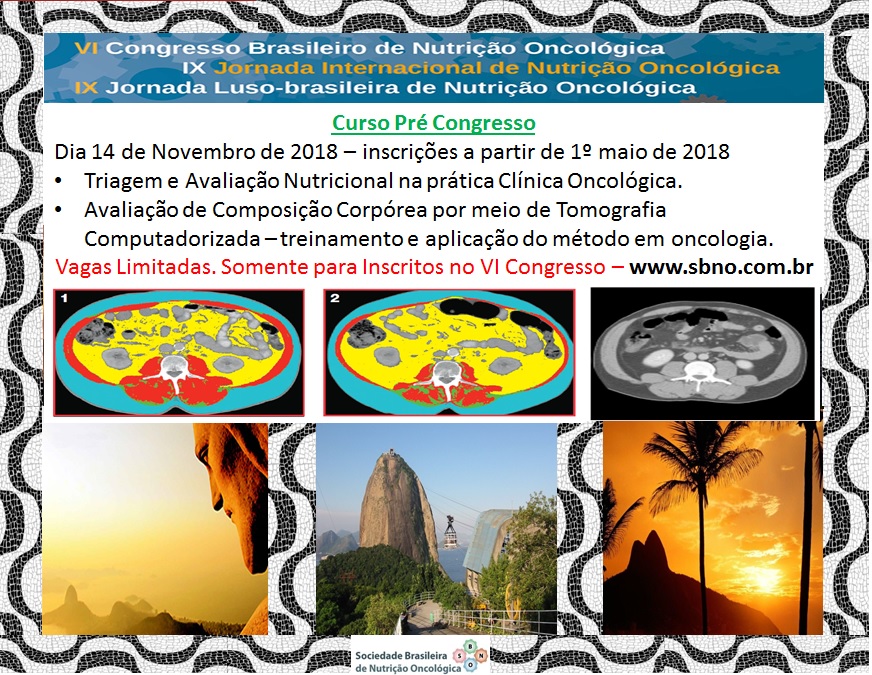 Lançado o Curso Pré VI Congresso Brasileiro de Nutrição Oncológica. O Curso acontecerá no dia 14 de novembro e, somente poderá se inscrever no Curso aqueles inscritos no congresso.